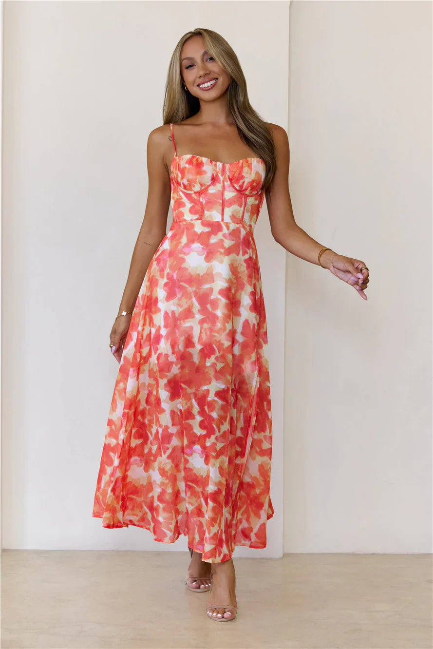 Turn every head in the All Eyes Here Maxi Dress. With an underwire and boning-look bodice that hugs your shape, this dress gives all the flattering vibes. The flowy printed skirt with a daring split adds movement and drama—because when you wear this, it’s all about stealing the spotlight.
