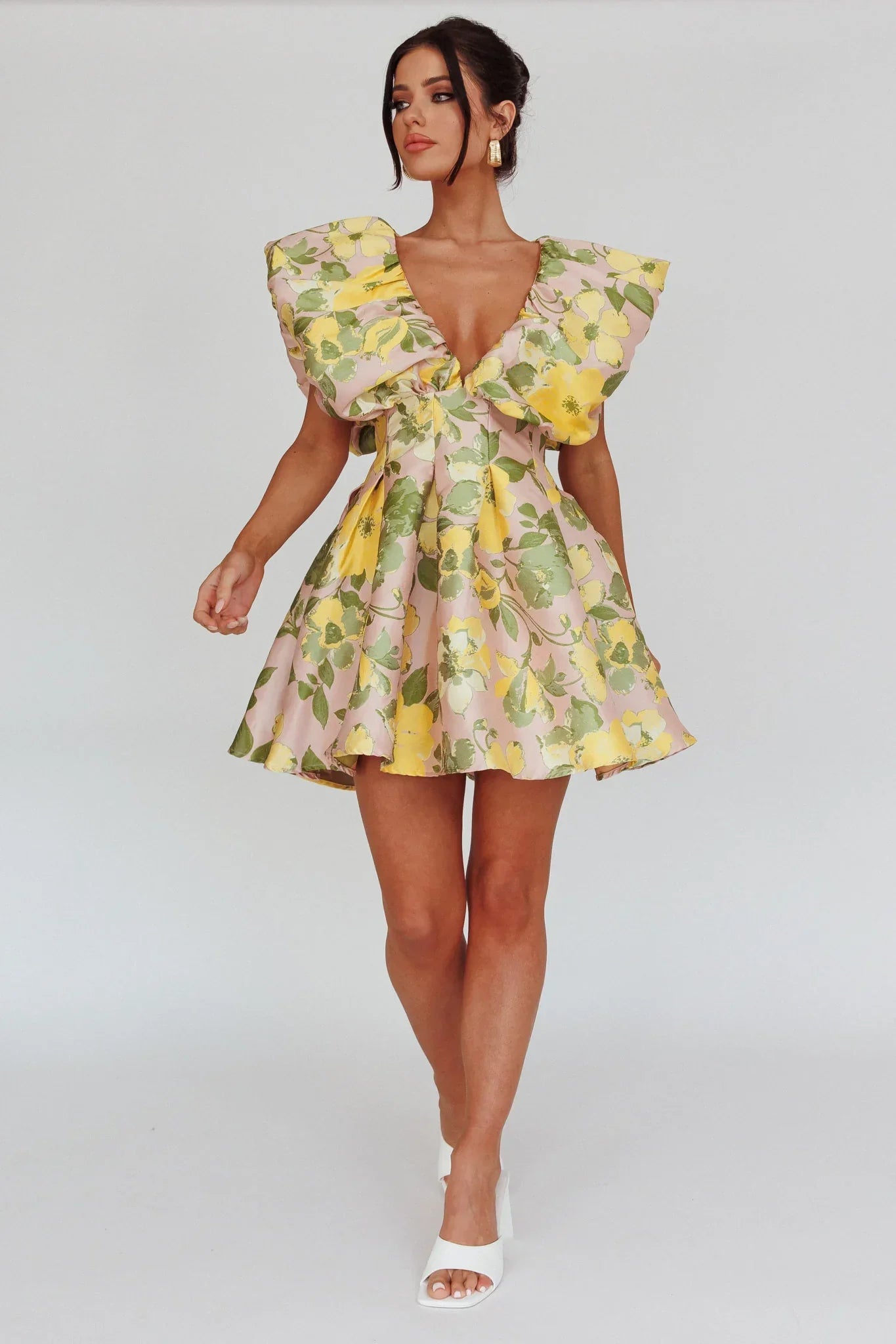 Steal the show in our gorgeous Bennet mini dress. Featuring a puffed neckline and pleating detail in the waist. It's perfect for a wedding or special occasion. Team it with diamante heels and a clutch for a showstopping look.