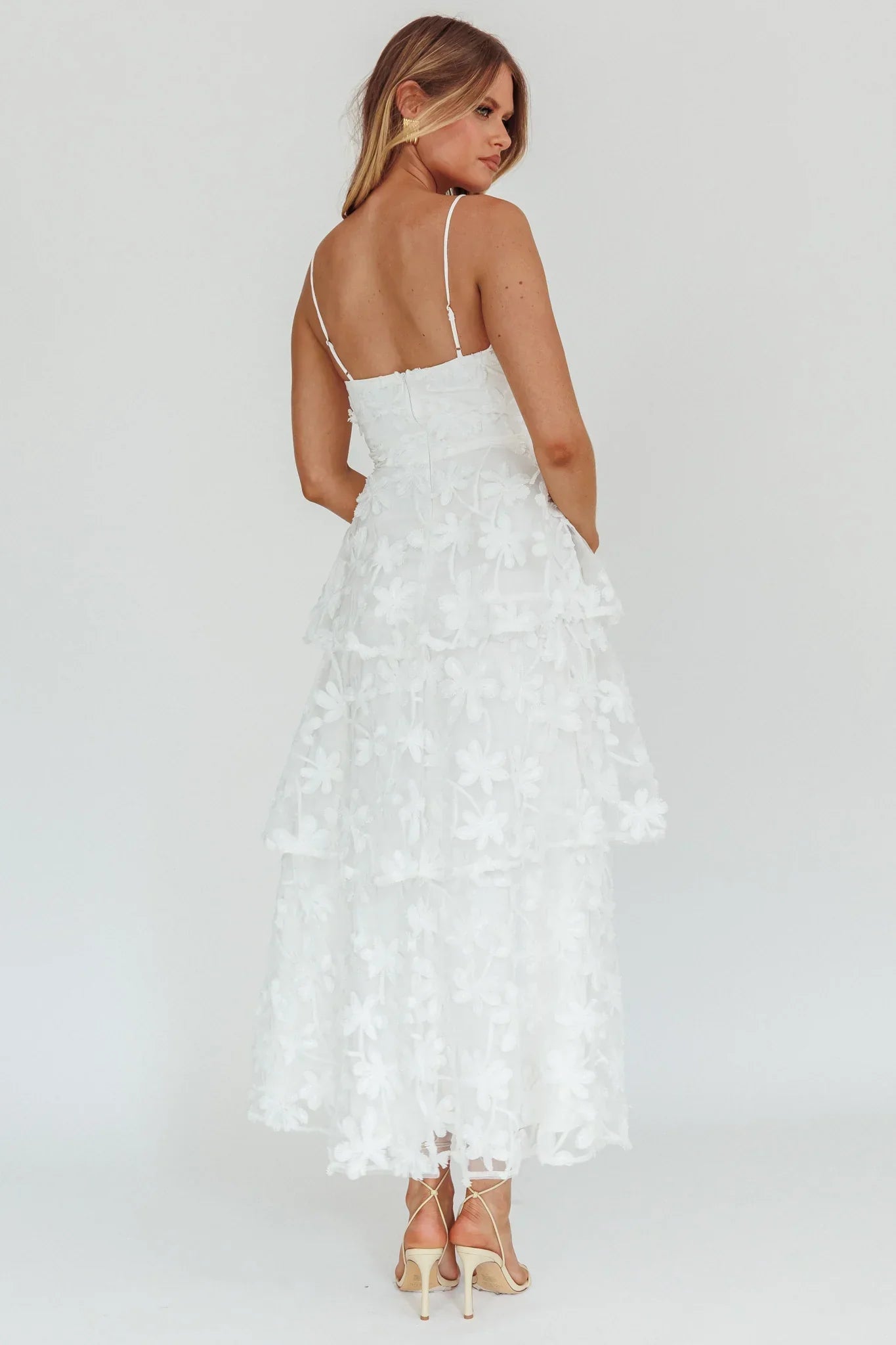 Turn heads in our pretty Dori maxi dress. Featuring a playful palm tree inspired 3D lace and a tiered ruffle design, it's perfect for any special occasion or a garden party with the girls. Team it with heels and a clutch for a look we are loving.