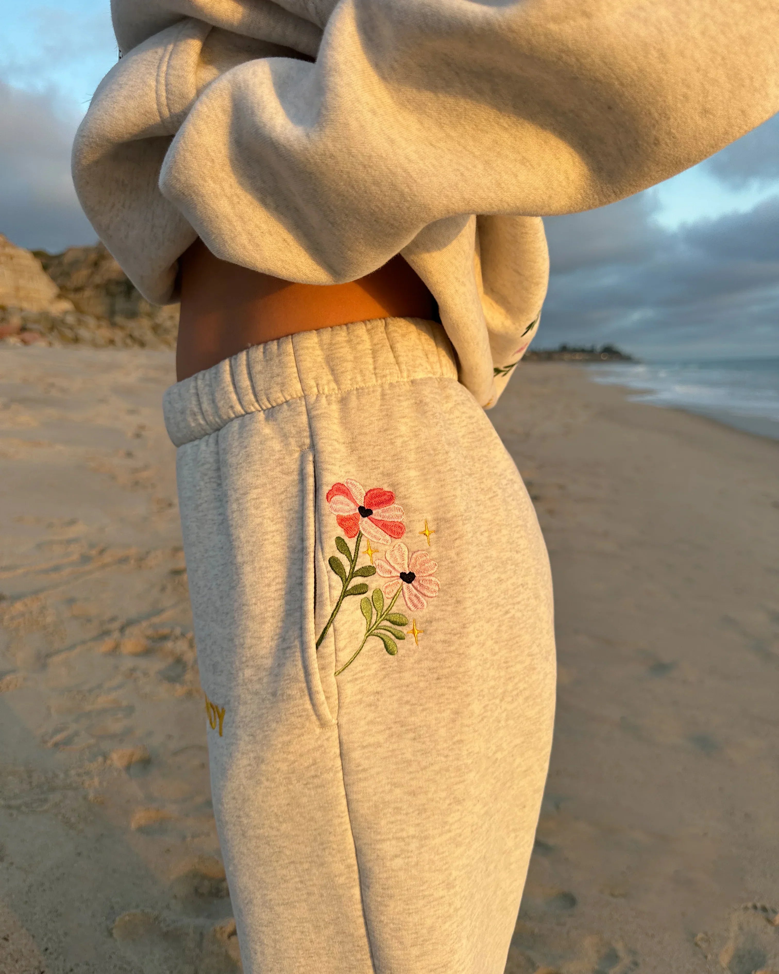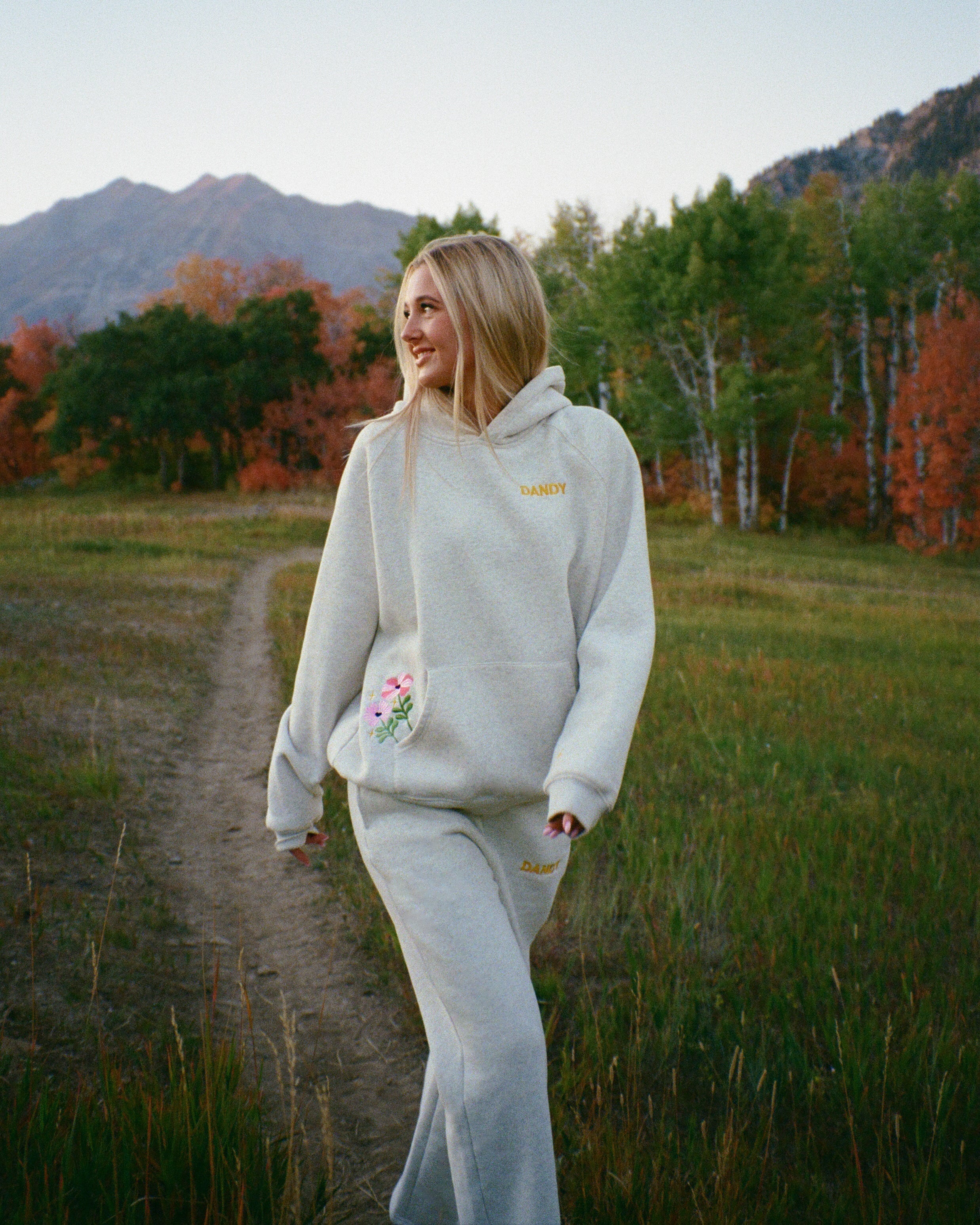 We like matching these sweatpants to our "Gift Giving" Hoodie in Heather Gray but also love mixing and matching. These pants will match any of the heather gray hoodies from Dandy.