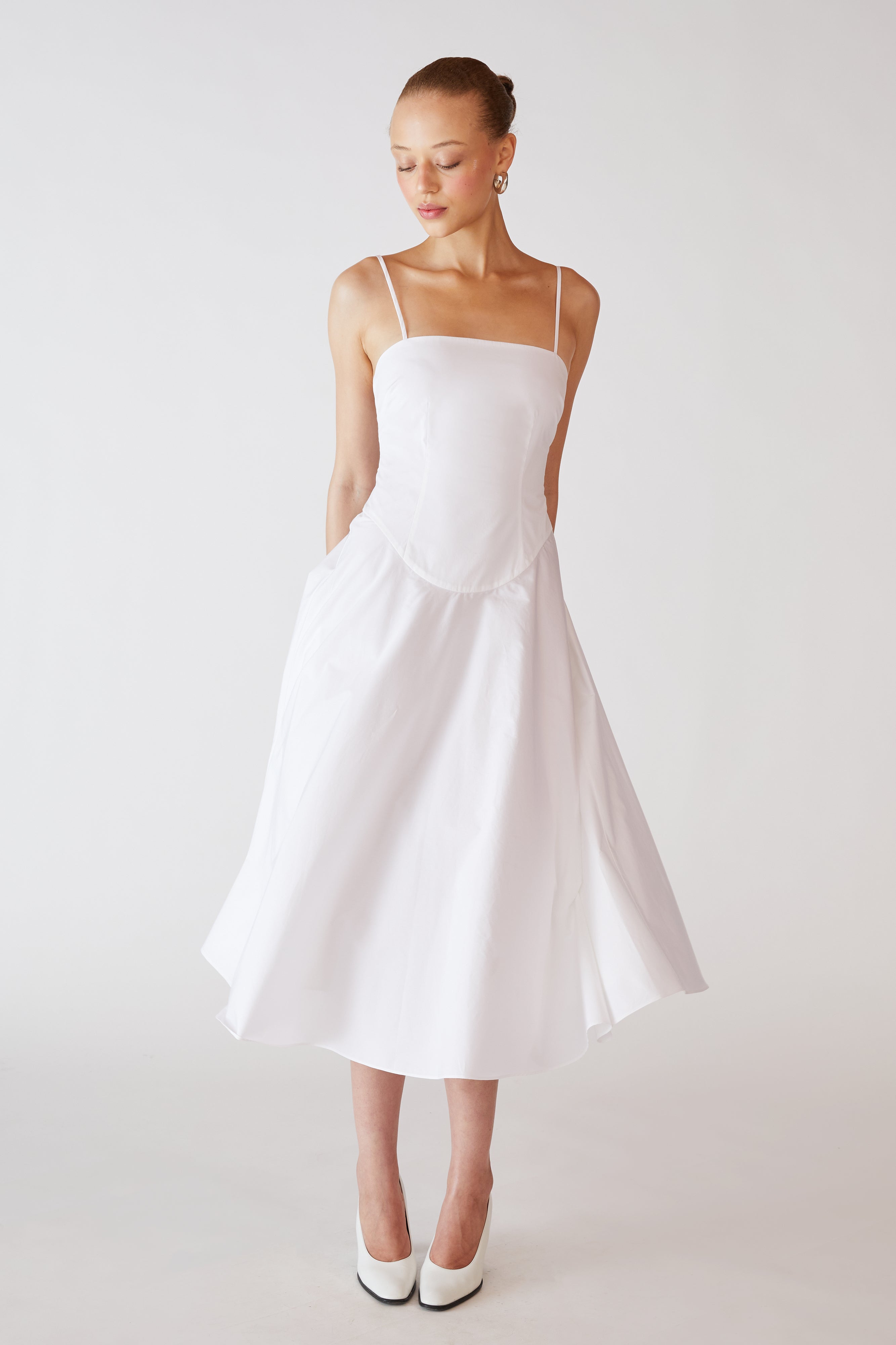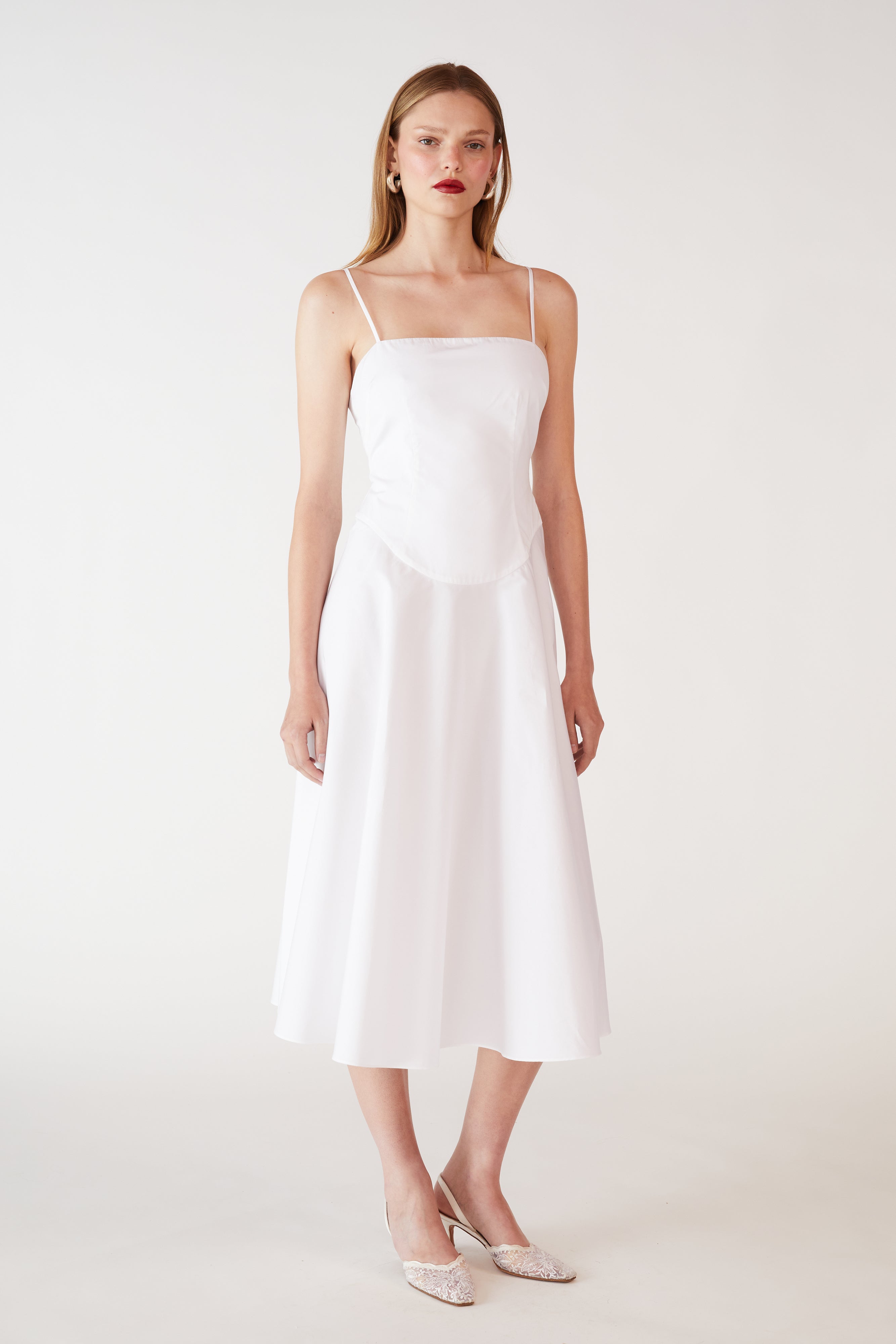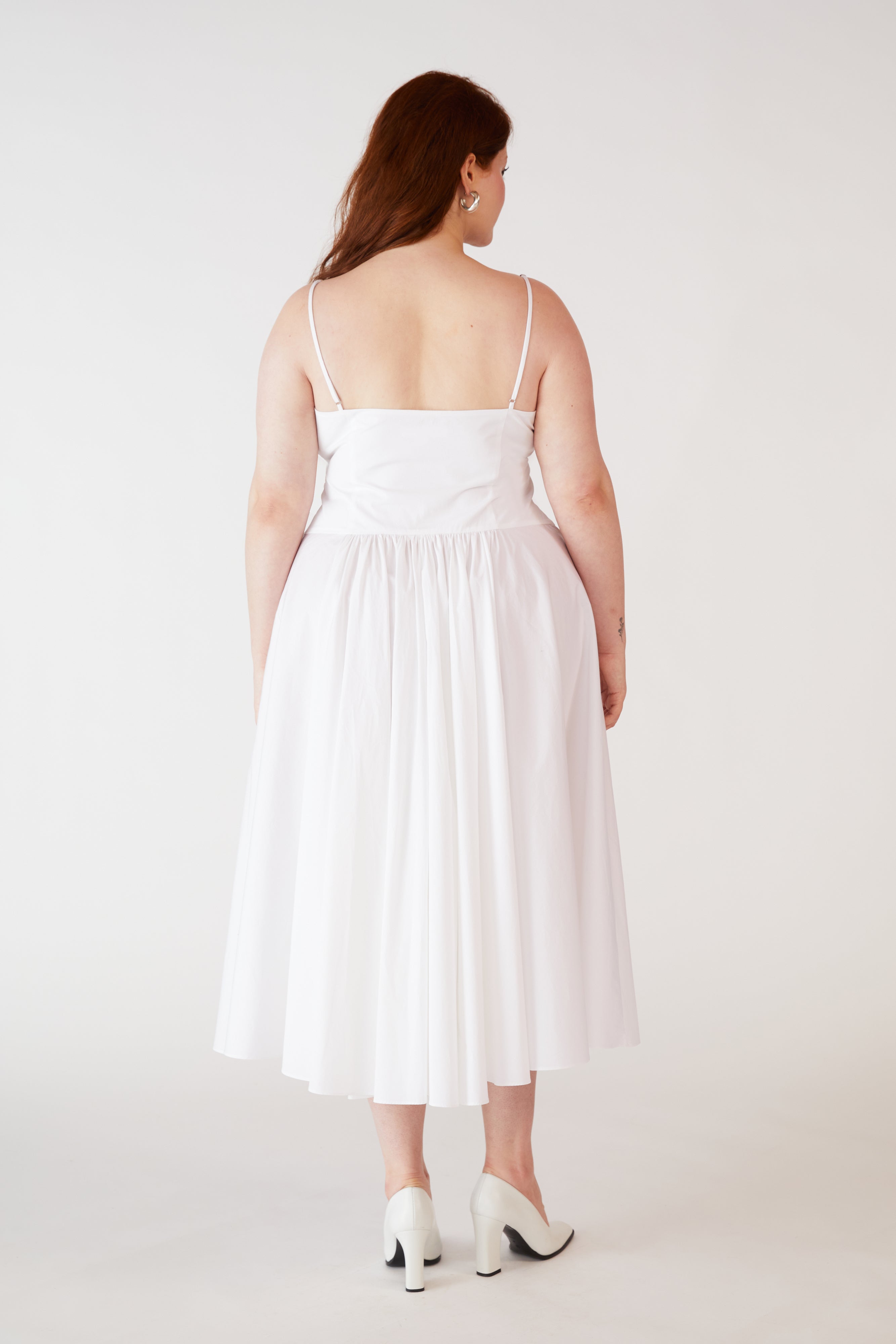 The Lady Cotton Dress is made from a soft, breathable cotton, designed and crafted in NYC. This tea length dress features delicate spaghetti straps and a flowy silhouette with gathered rouching at the center back. The perfect alternative to the classic Silk Princess Slip Dress, the Cotton Princess Slip Dress is a great option for those who prefer a more casual and comfortable feel.